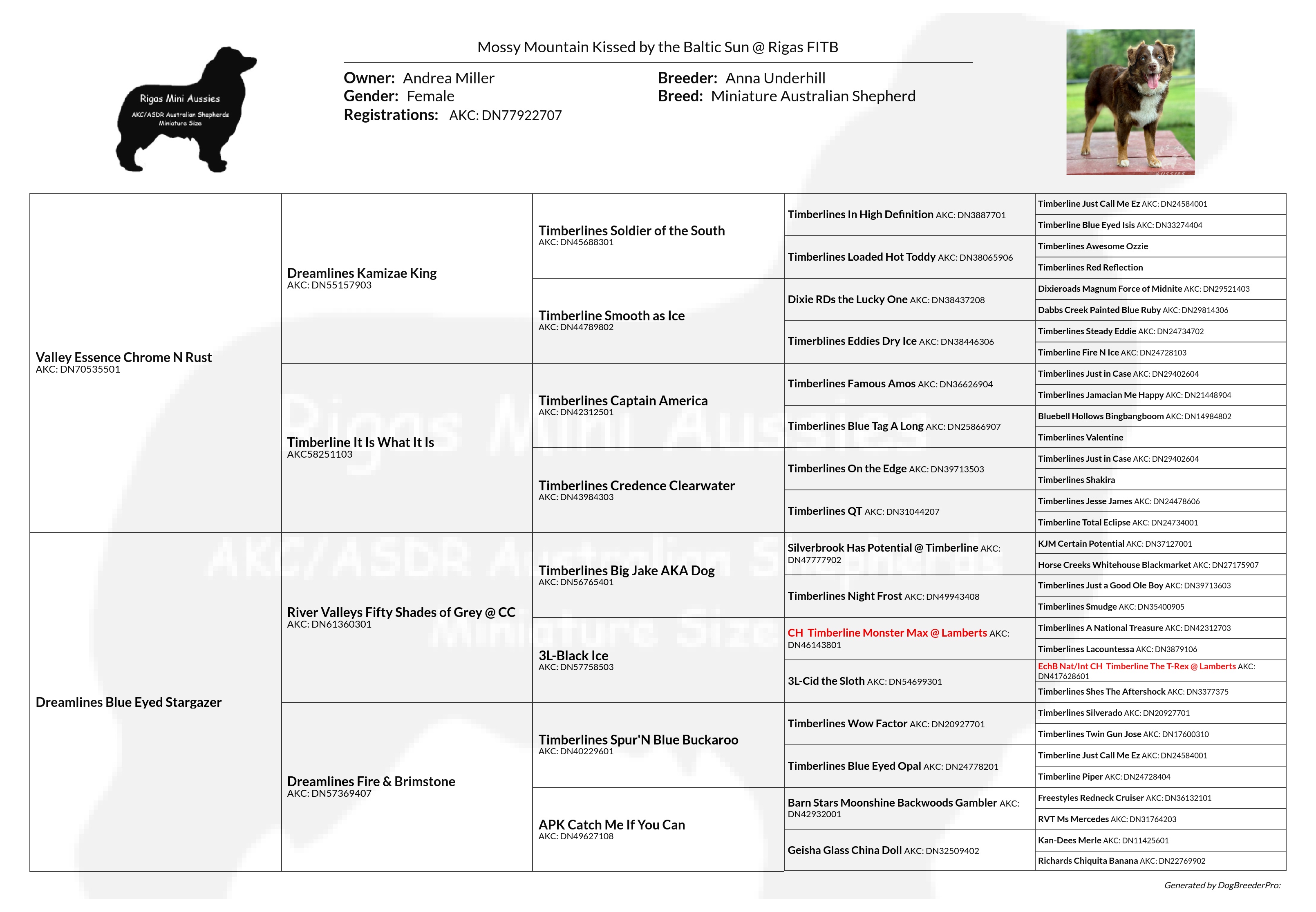 Kali is dual registered AKC (Australian Shepherd) and ASDR (Miniature Australian Shepherd) and is 17.5" and 32 pounds.