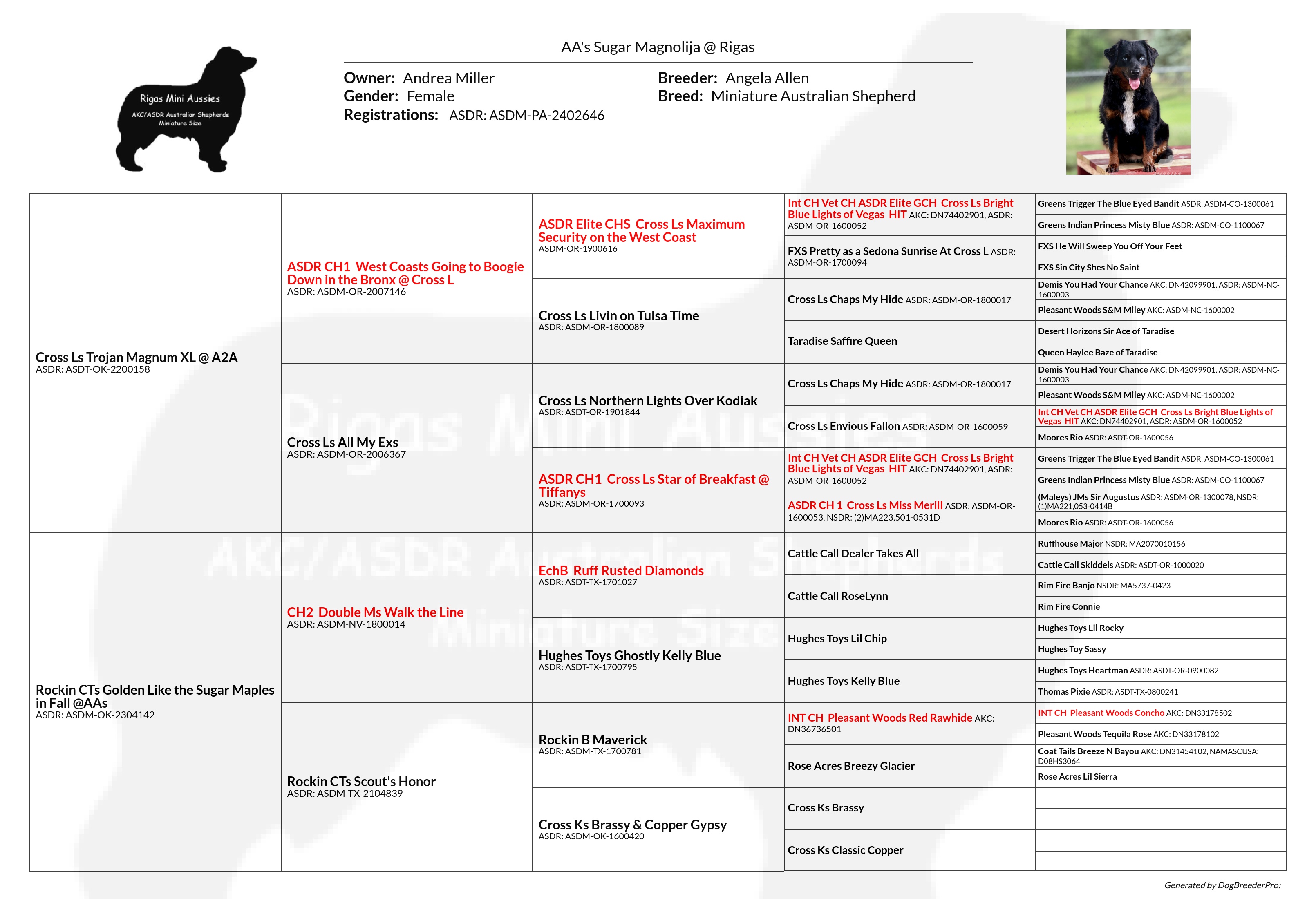 We are SO excited to add this gorgeous boy to our program and cannot wait to see what Isaac produces! He is a sweet, sweet boy and a total love. Isaac is dual registered AKC (Australian Shepherd) and ASDR (Miniature Australian Shepherd) and is 15" tall and 22 pounds.